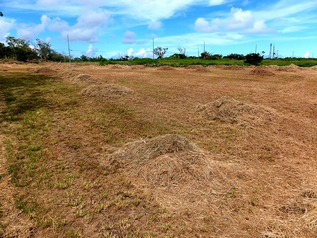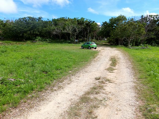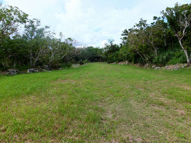 石積から西方向(グスクの外方向?)へ林の中の短い小径を抜けると、(草刈りされた)草っ原が広がっていました。
