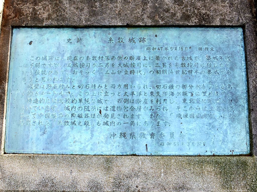 三山時代の始まった14世紀初期の頃、南山の有力按司であった玉城按司の三男、糸数按司が築いたとされ、その後の尚巴志の琉球統一の際、上間按司に攻め落とされたとも言われています。