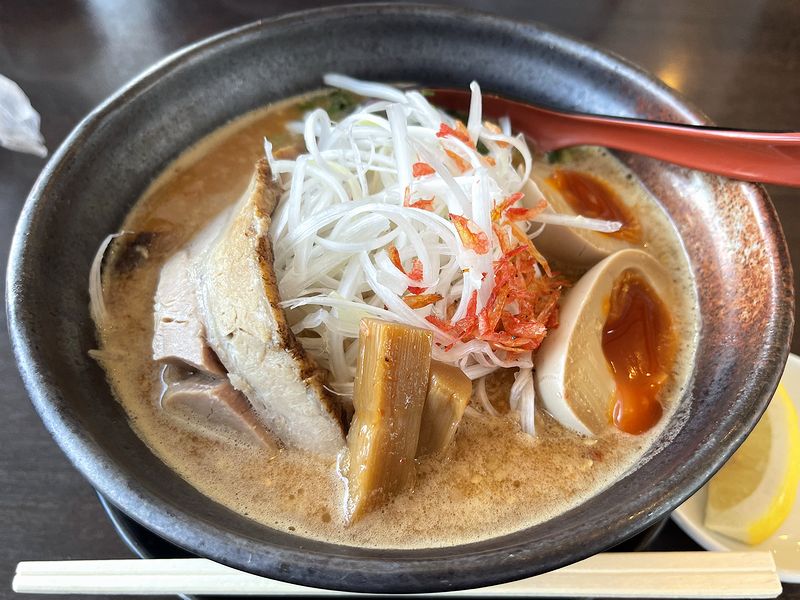 それで今回私は、かつて期間限定メニューとして出されていて、私も約3年ほど前にいただいた時に美味しかった記憶がある海老味噌ラーメンが復刻していたので、それを。ちなみに9、10月の期間限定として復刻したのが好評につき期間延長となっていたのはラッキーでした。