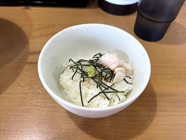 そんなラーメンをいただいている途中から、これ絶対合うとの確信にいたり、追加注文したのがお茶漬け。確か、朝ラーメンの限定だったと思いますが、今日、朝にしかお伺いできなかったことがしたことを逆にラッキーだったと思える相性の良さ。