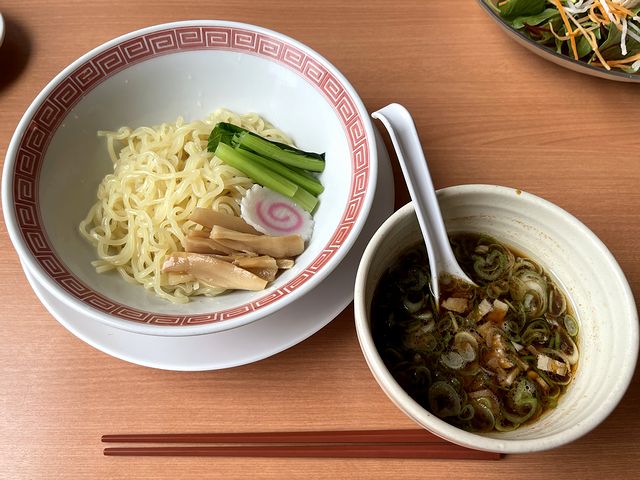 で、例によって味見させてもらったところ、醤油ベースのさらっとしたつけ汁は、しょっぱくて酸っぱくて辛いという、何とも懐かしいタイプのつけ麺といった味わい。家人も「懐かしいつけ麺が食べたくなったら幸楽苑に来ればよいのか」と。