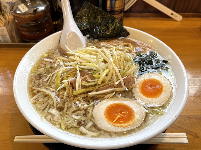 【ネギラーメン 790円 + 味付玉子 100円】