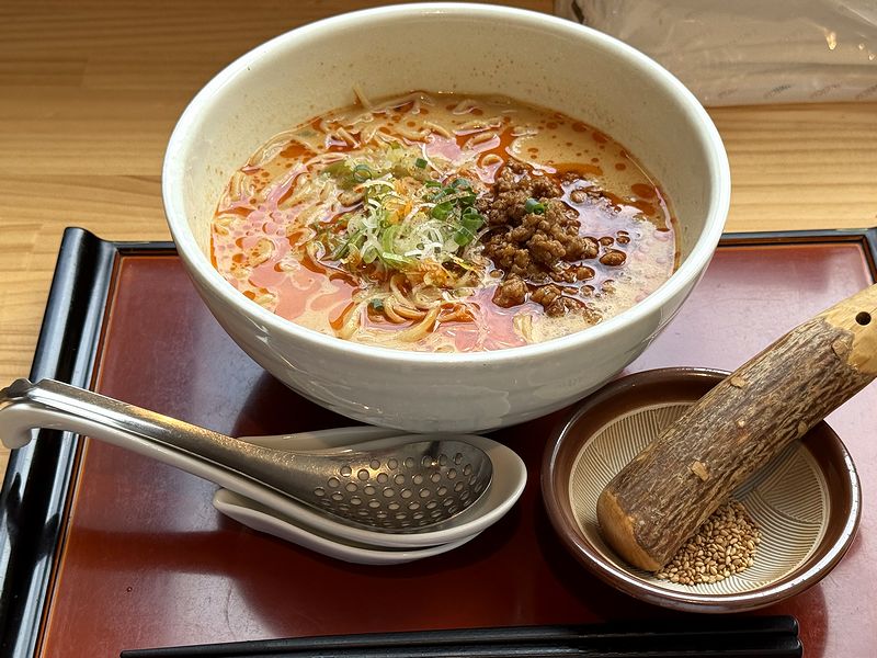 それで結局いただいたのが、以前本店や閉店した支店でもいただいたことがある、麻辣担々麺。店内の盛況ぶりから待つことを覚悟していましたが、食券提出から10数分で登場しました。