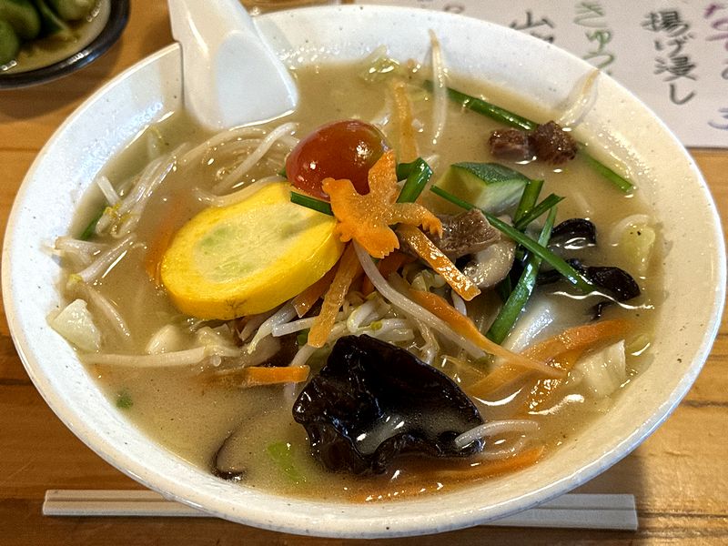 そんなキュウリとナスを堪能していると登場したのが、今回のタンメン。今回は朝取れのズッキーニがアピールポイントでした。