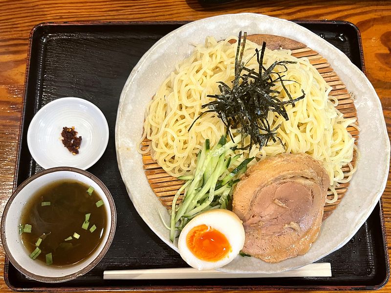 また麺は、ウェーブがかった細麺ですが、ツルシコっとした食感が良いですね。あと、冷たく締めても変に固くなっていないのは流石だなと。