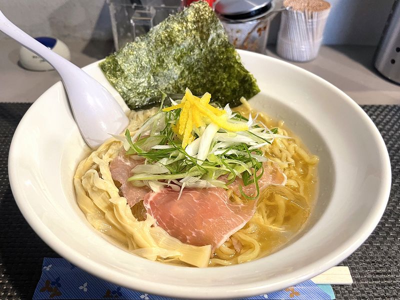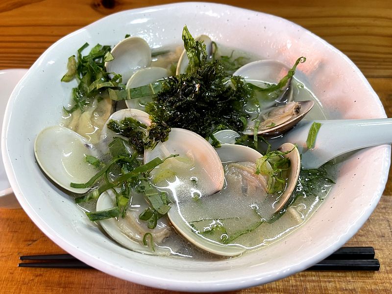 それで今回は、限定メニューの中から蛤と干し貝柱のら~めんを。塩味と醤油味から選べたので、今回は塩味をチョイスしました。