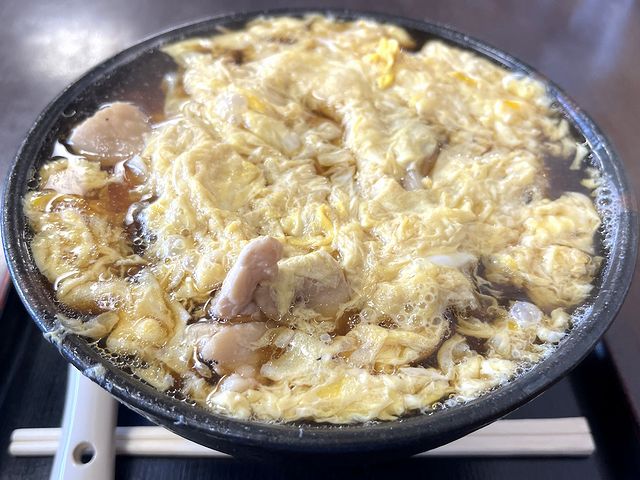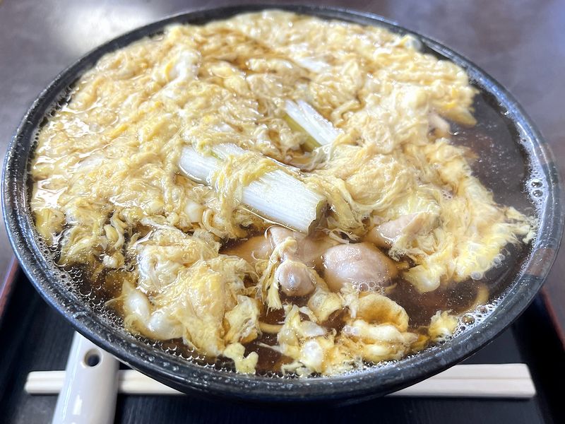 そしてタネですが、先述の溶き卵の他、そぎ切りされた鶏肉と、長めに切られた白ネギ。これらの煮込まれ加減も申し分ないですね。