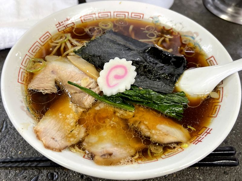 で、キャンプ場のまでの道程を調べた時、高速道路不使用という条件で出てきたのが、塩原から旧藤原町を経由して会津若松に出た後、国道49号を経由して新潟に入るというルート。これだと、会津若松市内をまた朝と言っても差し支えない時間帯に通過することになるので、ここで朝食を済ませることにしました。じつは福島県の会津地方は朝ラー文化が根づいている土地で、有名な喜多方はもちろん、会津若松市内でも朝からラーメンをいただけるお店がいくつかあったりするんですよね。
