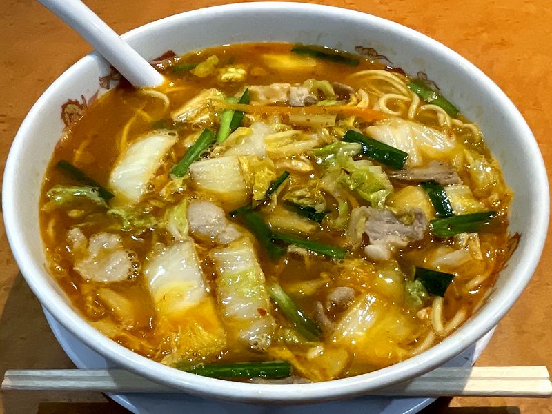そして具は、先述の豚肉、白菜、ニラの他、ニンジンも入っていたでしょうか。白菜はシャキっと感が残る仕上がりで、炒められたことによって味的にスープと良くまとまっています。