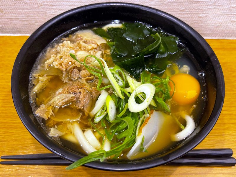 そんなわけで、今朝に続いてのスタミナうどん。「スタミナ」はお店によって具に違いがあるのは今朝いただいた時の記事でも書きましたが、こちらのは、牛肉(肉うどんのものと思われる)、生玉子、そしてわかめという組み合わせです。(かき揚げ+生玉子というパターンもメジャー(私調べ)ですが、肉+生玉子というパターンもわりと良くありますね。)