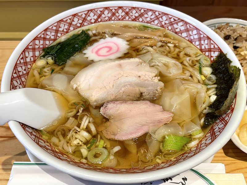 それで今回は、久しぶりに醤油味のワンタン麺を。