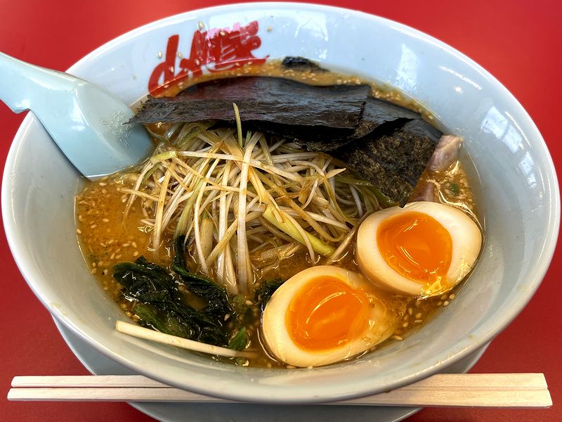 お昼時に入りつつあったせいか空きが少ない駐車場にクルマを停めて入店したあとは、他の山岡家のお店と同じく食券を購入するのですが、その券売機が、店舗改装とともに取り替えられたのか、最新式になっていました。で、この券売機がスグレモノで、高額紙幣はもちろん、電子マネーやクレジットカード決済に対応。連休に入り、財布の中の実弾(現金)を極力減らしたくなかったので、これは助かりました。しかし、改装直後にもかかわらず、店内の床がオイリーで滑りやすかったのは、さすが山岡家さんという感じで。あと同行の家人は「やっぱりここも山岡家の臭いがする」とのこと。私はすっかり慣れてしまったというか、気にならなくなった、あの独特の匂いも、改装直後にもかかわらずしっかりとするんですね。