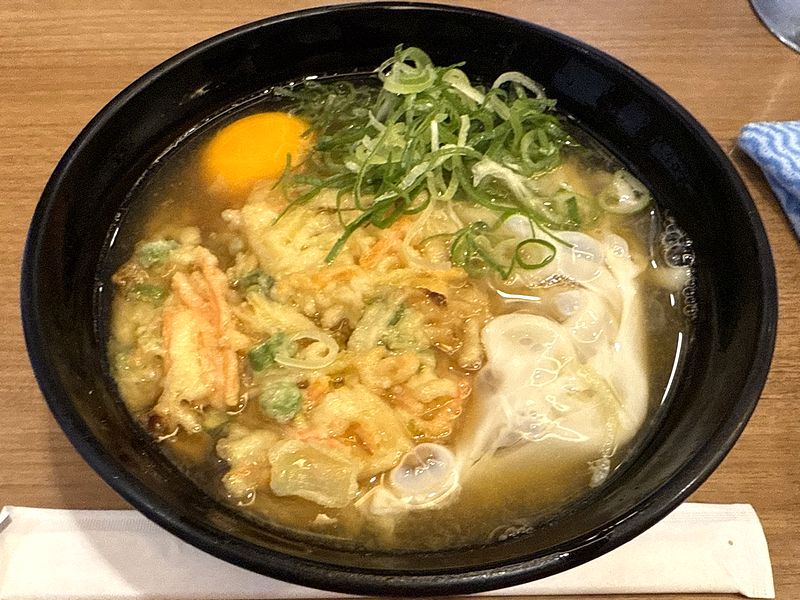 それでいただいたのが、個人的定番の天玉うどん(こちらでは、かき揚げうどんに生玉子追加)。