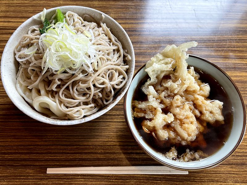 それがこの、(冷やし)ミックス。冷やし(ひたし)自体、栃木県北の一部にしかないローカルメニューですが、更にそのうちの一部のお店は、その冷やし(ひたし)でソバとウドンの合盛りを提供していて、そのすべてが、私が知る限り「ミックス」という名前になっているんですよね。