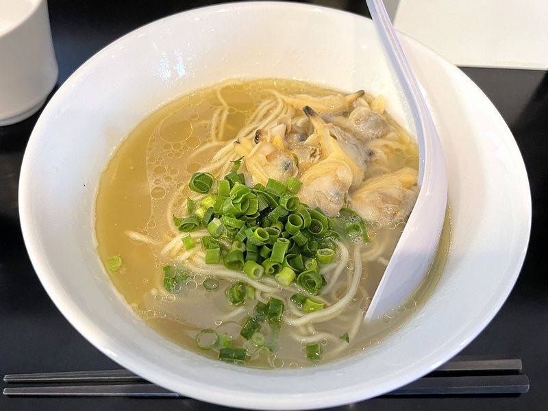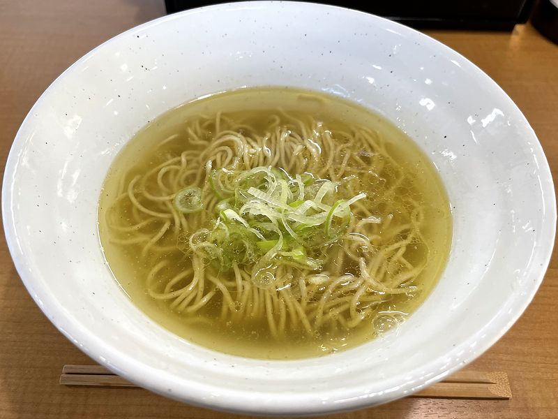 あの味わいの元がアサリとホンビノス貝というのに得心したのですが、逆にこれはレアなバージョンの貝出汁中華そばがいただけるチャンスということで、その翌日の朝、少々寝坊したものの国道4号を南下。駐車場にクルマを止めお店に入ると、入り口の扉が開け放たれていた(たまたま?)せいもあってか、前回感じた濃密な二枚貝の香りはなく、券売機横のホワイトボードにも記載が無かったため一瞬「提供中止?売り切れ?!」と焦ったものの、無事ありつくことができました。