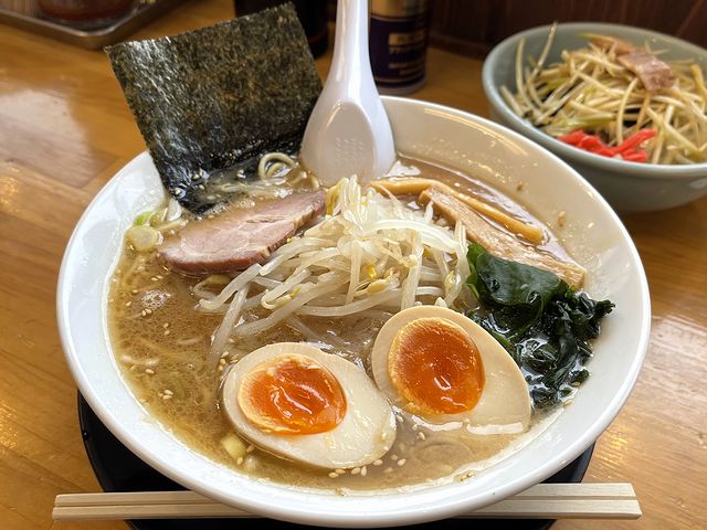 また麺は、ラーメンショップ的細ストレート麺ですが、何も言わないと若干柔らかめとも思える茹で加減。ですが個人的には、このくらいの方がこちらのスープと合っているかと。