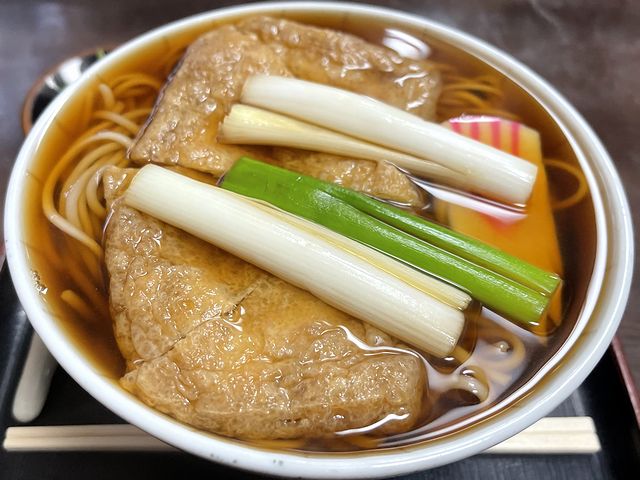 こちらのきつねそばは、さっと火を通した白ネギが入っているのが特徴的。個人的にネギは好物のひとつなので味見させてもらうのですが、シャキッと感と甘味の両方が感じられ、単調になりがちなきつねそばの味わいに変化を与えてくれる気がします。