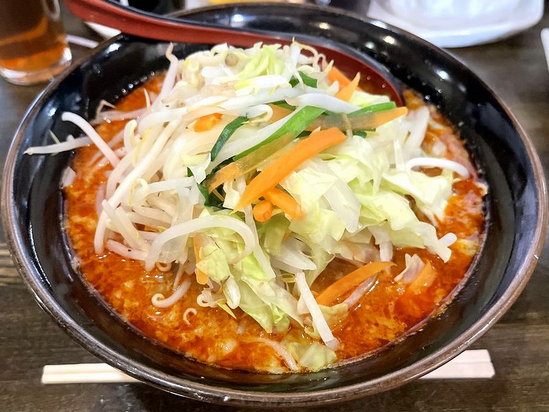 それと具は、キャベツ、モヤシ、ニンジン、ニラなど種類も豊富な茹で野菜がたっぷり。こちらのお店は具が必要十分な素ラーメンも良いですが、ことピリ辛などみそ系の味に限っては、野菜ラーメンの方が好みというか茹でた野菜のさっぱり感がベストマッチかと。