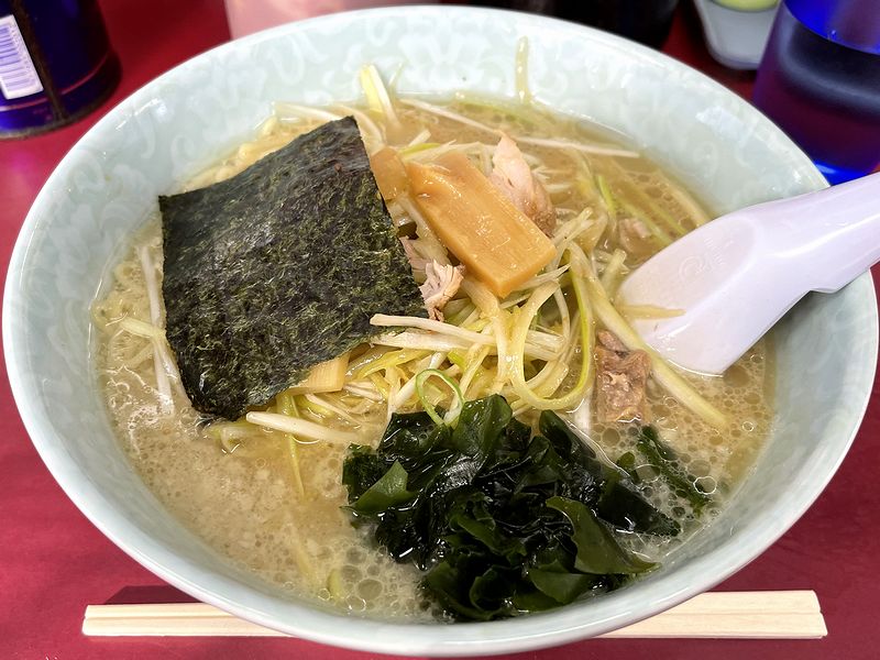 それを一瞥し、ネギチャーシューメンをお願いするも、残念ながらチャーシュー切れとのこと。なので今回はネギラーメンをお願い。入店から3ロット目、20分弱で登場となりました。