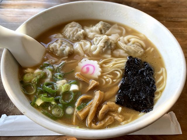 また麺は、ラーメンショップのラーメンなので細めのストレートタイプですが、泉崎店と同じくアサカ商事の自家製麺らしく、食感も同じく動きがもっさりした印象。ただ、全体的にコッテリ目のアサカ商事のラーメンにはこの麺がよく合うんです。