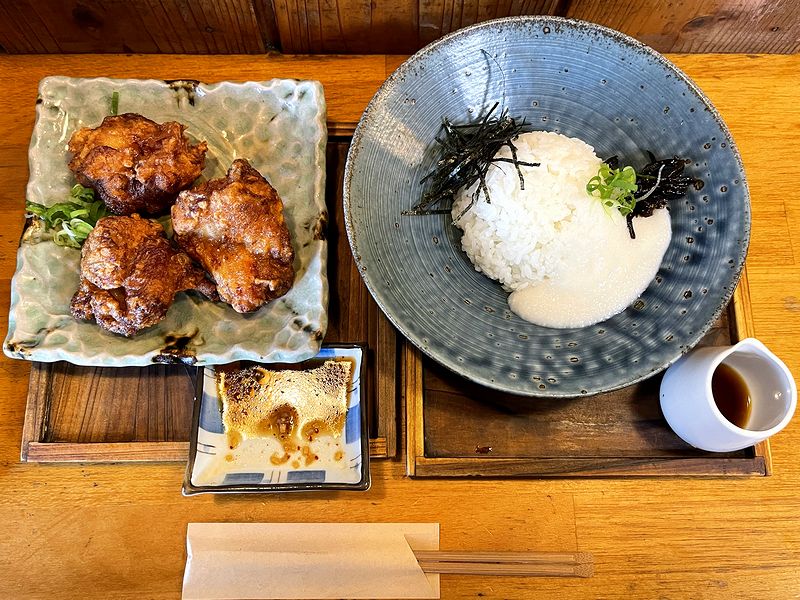 【つくば鶏もも肉唐揚げ 180円 と ろろごはん 200円】