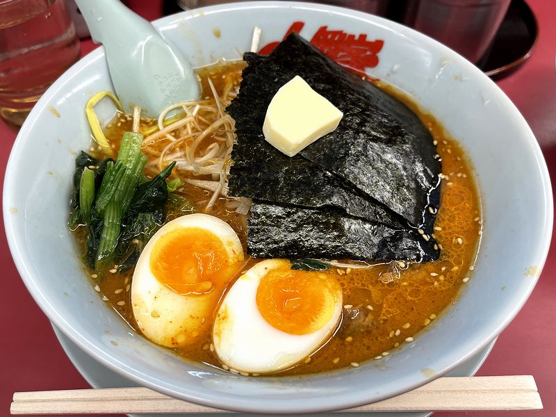 その他、まとめて口に入れるよりも数本づつ啜った方が美味しく感じる太ストレート麺や、ゴマ油の香りが良いネギ、甘味強め味付けで角切りにされたチャーシュー、ほうれん草、追加した味がしっかり入った味付けたまごなどの具材はいつもどおり。あとバターは、大辛以上にしたほうがバターの風味と辛さのマッチングが出てくるというか、うまいっちゃうまいけどちょっと勿体無い感があったというか。