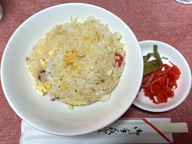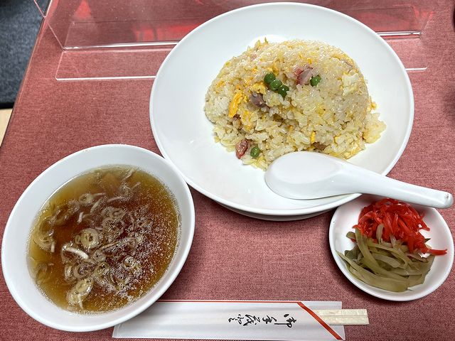 あとセットの半チャーハンですが、これがまた絶妙にしっとりとした優しい味わい。塩による味付けは抑えめですが、付属の紅ショウガやザーサイと合わせると丁度よい加減というのが良かったです。