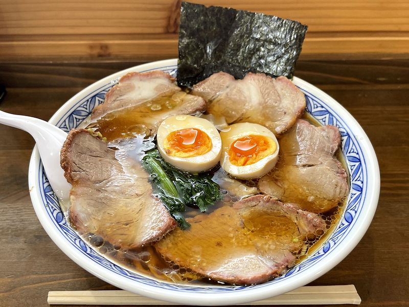 で、白河ということは当然ラーメン。そこで改めて今回調べたところ、こちらのお店がヒット。白河ラーメンといえば、有名ないくつかの老舗と、そこで修行された方々が出されたお店というイメージが強かったのですが、こちらは市役所を定年退職後、独学で白河ラーメン作りを学ばれた方が出されたお店だそうで。