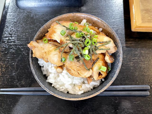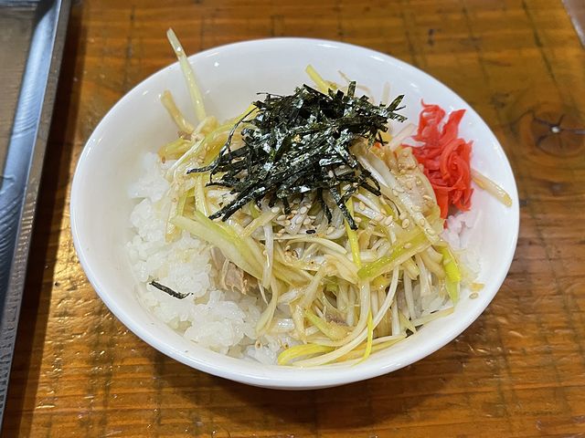 ご飯の上に、タレで和えられたネギ+チャーシュー小間切れが載って、海苔やゴマがあしらわれているという、別のお店ではネギ丼とも呼ばれるスタイルですが、これまでいただいたことがあるその類の品の中でも、バランスが良いというか。