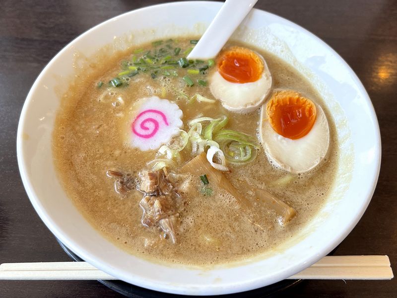 あと具のチャーシューは、ノーマルなラーメンに比べるとだいぶ小さくなりますが、トロっとした柔らかさや丁度いい味加減などのクオリティはそのまま。そもそもこちらのみそラーメン、スープと麺だけで満足できてしまうので、チャーシューはこのサイズでも十分っちゃ十分なんですが。また追加した味玉も、黄身の固まり加減、味加減ともバッチリです。