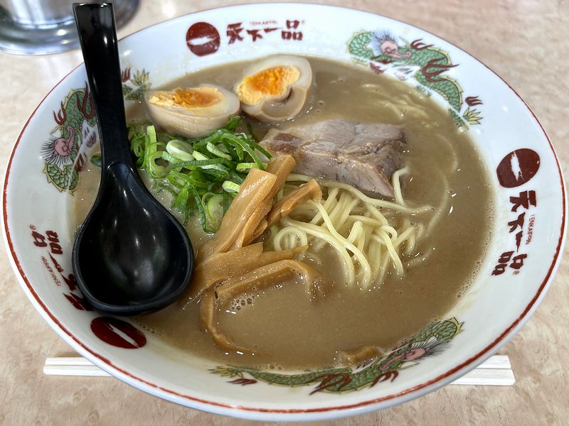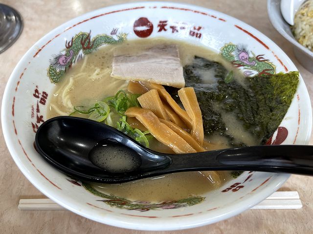 そして麺は、天下一品オリジナルの、ツルっとして若干ビヨ~ン感のある、細めのストレート麺。このくらい真っ直ぐじゃないと、こってりスープが絡みすぎてしまうというか。