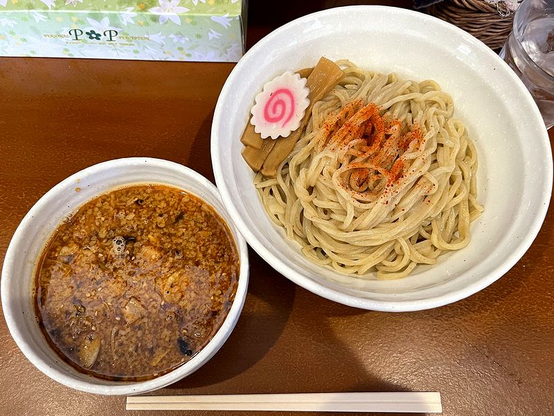 で、この日は、4月下旬にしてはわりと暑かったこともあって、つけ麺にしようと思っていたところ、3種類あるつけ麺の中から券売機で食券を買ったのは、初めていただくことになる辛つけ麺。暑い日にわざわざ汗をかかなくても良いとは思いますが、食べたくなってしまったものは仕方がないということで。