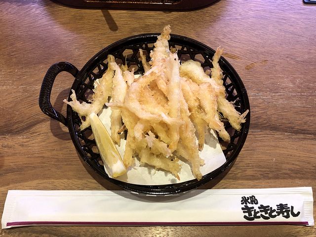 ビールを飲みつつつまんだのが、富山湾名物である白エビの天ぷら。当然揚げたてで、衣はサクサクで香ばしく。でも中は柔らかくて、わりとしっかりとした海老の味が。また、味付けは衣にうっすら塩味が着いているのでしょうか?そのままでも十分美味しくいただけました。