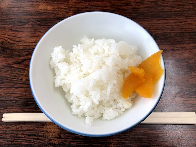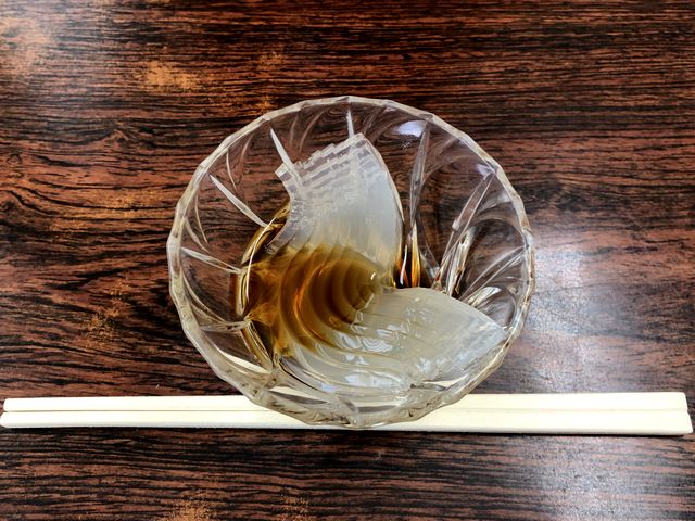 で、食券を提出する際、サービスのライスの有無を尋ねられましたが、食券を渡すと、これまたサービスのところてんが登場。このあたりから、このお店が個性的だなと感じ始めます。