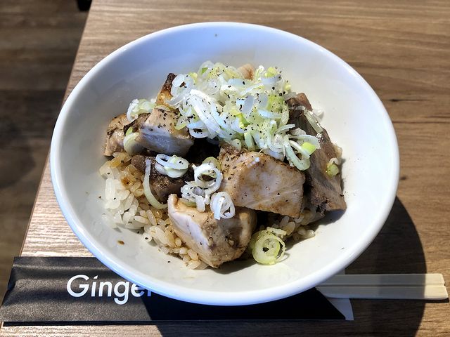 こちらは、予定にはなかったけど「昼の部限定(平日のみ)」の文言につられて思わず注文してしまった品。ご飯の上にたっぷり載ったサイコロ状のチャーシューは、表面の香ばしいものや中心部のしっとりしたものなど色々。味付けは、チャーシューそのものの味が前述のとおりなので、甘辛な醤油ベースのタレが掛かっているのですが、黒コショウと白ネギが味を引き締めています。
