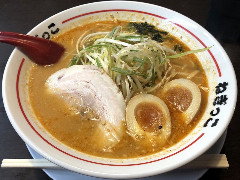 席について食券を提出すると、それからあまり待たずに登場したのが、からしネギみそラーメン+たまご。早速スープからいってみると、ベースは栃木県内にあるねぎっこさん同様、豚骨白湯でしょうか?まろやかですが、丁度よい濃度というか。そこに、濃いめの味噌味が決まり、唐辛子由来の辛さがピリっと。ちなみに、辛さは個人的な感覚だとピリ辛程度でした。そして麺が、西那須野のお店で慣れ親しんだ加水率高めの中太ストレート麺ではなく、加水率は低めでしょうか?動きがの硬めな中くらいの太さの緩い縮れ麺。これで結構印象が違って感じます。それと具は、チャーシューが煮豚で、柔らかくて味付けは薄め。ネギは良い塩梅。あと追加した味玉は、写真のとおりきれいにカットされて載っていたのですが、黄身の固まり加減が丁度良く、味付けは甘味が効いていました。