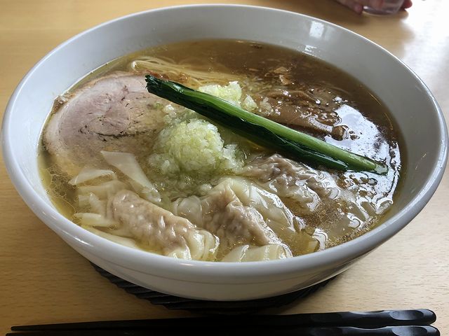 それで今回は、醤油ワンタンめんに半熟味付け玉子を追加して。登場してまずは、表面に油がけっこう浮いたスープからいってみたところ、どこか八角を思わせるスパイシーな香りが控えめに。口に含むと、出汁は鶏と豚のダブルスープとのことですが、動物系の旨味が濃いですね。色は澄んでいるのに、幅がある味わいに感じます。薬味的に入っている九条ネギが合いますね。そして麺は、ストレートな中細麺。ツルツルっとした啜り心地に、ゆるっとしていて、それでもちゃんとコシがある、柳腰という感じの食感。それと具は、しっかりとした餡が入ったワンタンは、存在感あります。またチャーシューは、ホロホロと分解するような柔らかさで、味付けは薄めなので肉を感じる味わい。メンマは手間かかってそうですが、あくまで脇役としての主張。追加の味玉は、黄身がトロトロで、味加減も丁度良いです。