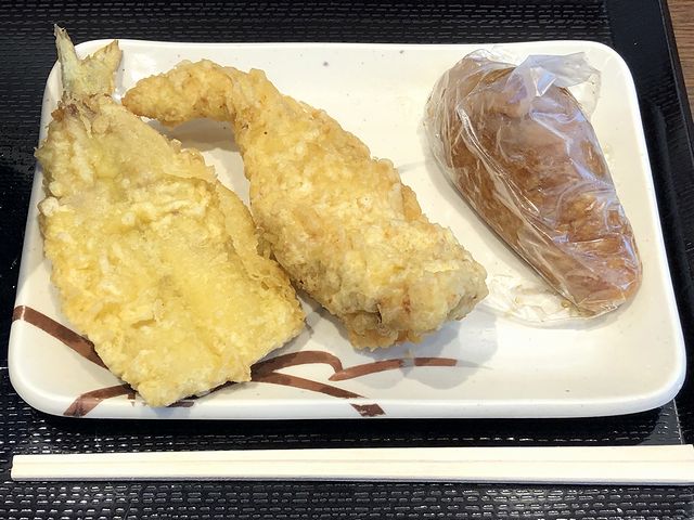 【いわし天 150円、かしわ天 150円、いなり 110円】