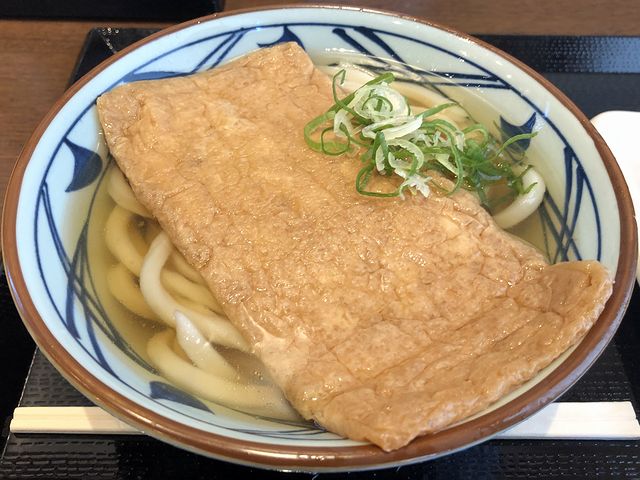 こちらは、一緒にいただいた品々。で、うち天ぷら類は、卓上の「だしソース」で。これは余談ですが、実は子供の頃、魚の天ぷらなんで大嫌いだったし、ましてや天ぷらをソースで食べるなんて考えられなかった(どうしても食べなきゃならない時は、醤油(天つゆなんて身近になかった)をダバダバかけて誤魔化してた。)んですよね。でも変われば変わるもので、一度関西でそのような食べ方をして、それが「美味しい」と認識して以来、今やすっかり好物になったという。それとおいなりさんは、丸亀製麺では確か初めていただいたのですが、揚げがつゆだくで味付け甘さ強いんですね。