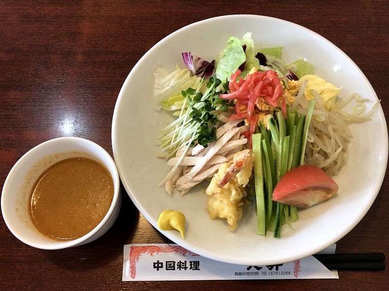 それで豊富なメニューから今回お願いしたのは、個人的にここ数年来夏場はできるだけいただこうとしている冷し中華。味付けは胡麻ダレと醤油ダレから選べたので、胡麻ダレを願いしました。