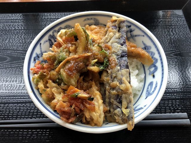 こちらは、平日限定?の数量限定品らしく、私の注文が最後の一つだったようで。で、作っているところを見ると、天ぷらをタレでサッと煮てから提供するような感じで、天ぷらはナス、さつまい、そしてとかき揚げ。甘みが強いタレはちょっと懐かしいというか、実家で、天ぷらが余った時に翌日こういう食べ方してたことを思い出しました。