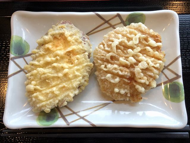 【さつまいも天 130円(税別) + 鶏天 150円(税別)】