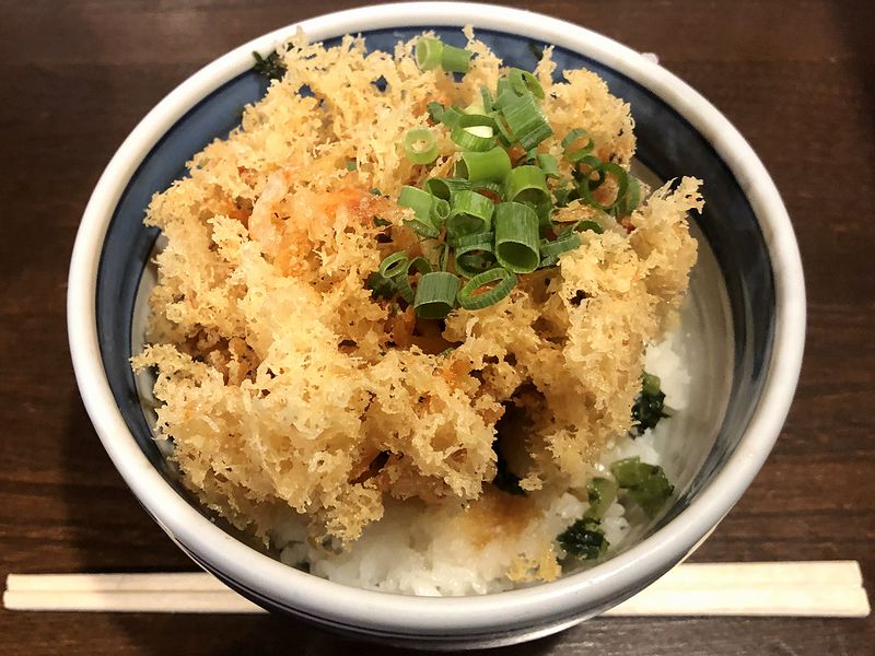食券提出からあまり時間をおかずに登場したのは、一度茹でた麺を締めた後、冷蔵庫でキンキンに冷やしているからでしょうか?で、まずは麺とタレ、生玉子と鰹節を全体的に混ぜようとしたところ、それだけでわかる麺の強(こわ)さ。それによって全体を絡めるのに一苦労しつつその麺を口に入れると、しっかりと冷たい極太の麺は、ソリッドな硬質感のなかにグミモチシコっとした食感が。最近体力の低下が著しい私のようなオッサンだと、噛むのに顎が疲れるほどですが、だが、そこが良いというか、噛みしめるほどに、麺自体の味をしっかりとした小麦の味を感じることが出来ます。またそれに絡まるタレは、醤油味ベースだと思ったのですが、冷たい麺に生卵という組み合わせでも、そのタレと鰹節の風味・旨味で、生卵の生臭さを上手く消してコクとまろやかさを引き出す、何とも良い塩梅になって。もっとも、卵そのものも相当良いものを使っておられるというか、この卵ならこの麺に負けないなと思いましたが。あと、混ぜずにちょいちょい付けていただいたワサビのアクセントも、実に良く合っています。そして麺を食べ終えてタレが少々残ったところに、こうなることを見越して、後述するポクステ丼のご飯を二口程残しておいたものを投入。それも、間違いのないブラボーな味でした。