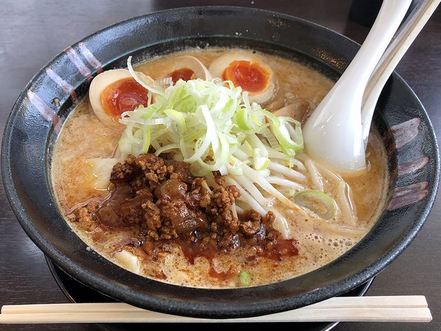 【辛味噌ラーメン(麺小盛) 840円 + 那須御用卵の味玉 ガチャガチャ4等で100円】