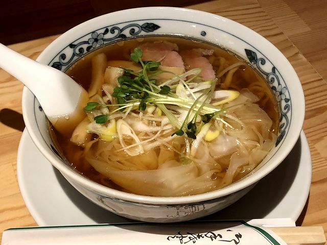 こちらは、相方がいただいた品。目的の、チュルチュル麺のラーメンに加えてトゥルントゥルンのワンタンもいただけで、満足したようです。