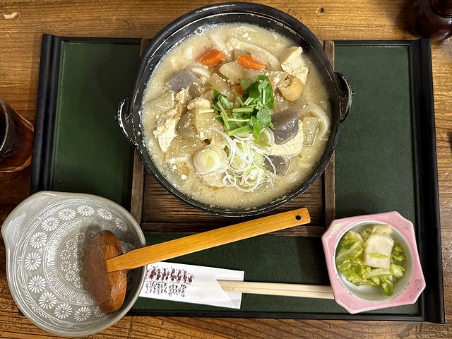 で、例によって味見させて貰いましたが、根菜と白味噌ベースの味付けが本当に良くマッチしていて、これも良いですよねぇ。