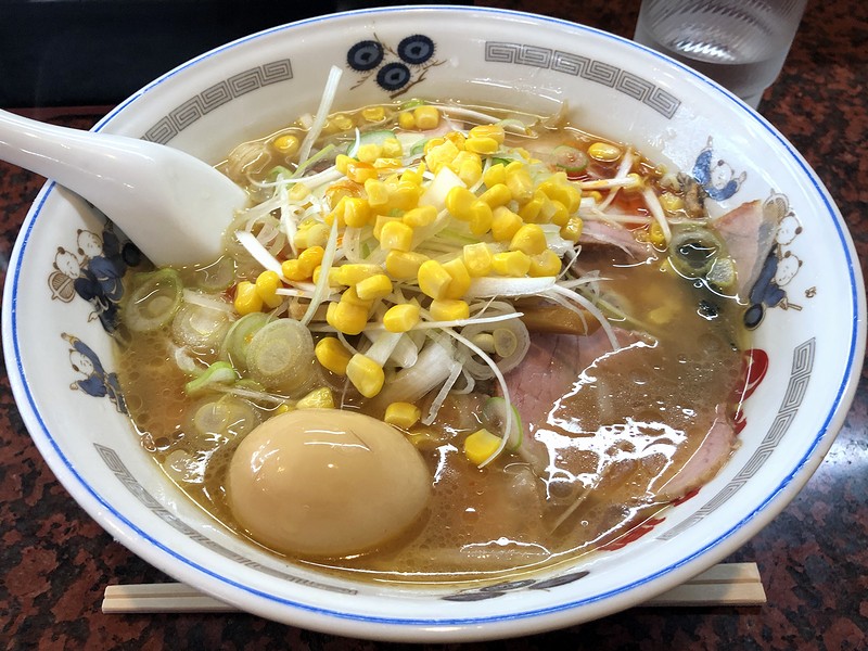眼の前で鮮やかに調理されるのを眺めつつ待つこと少し。登場するとまずはスープからいってみたのですが、基本的にアッサリしているけど醤油味のらーめんよりも動物的コクと旨味があるような。そこに合わせる味噌ダレは、味噌の香りがちゃんと残っていて、味付けも丁度良く。更に、仕上げにタラっと掛けられたラー油が、ピリッと適度な刺激を加えていますね。また麺は、極上とも言える手打ち麺。エアリーな歯触りからモチムチシコっとした噛み応えが、もう。こちらの麺は、個人的に今まで食べた白河ラーメンの中でもトップランクの旨さだと、改めて思いました。そして具のチャーシューも、また。適度にスモーキーで、味付けや肉の食感もたいへん好ましく。それと何気に効いているのが茹でモヤシ。そのシャキっとした食感が麺との対比を生み、一緒に頬張ると何とも楽しいことに。コーンも嬉しいですね。あと追加した味玉は、黄身がトロっトロの固まり加減。味付けも丁度良いです。それで麺も具も食べ終えて、最後にスープを飲み干そうとしたところ、丼の底に結構な量の豚挽肉を発見。最初に感じた動物的コクと旨味は、これから来ていたようですね。
