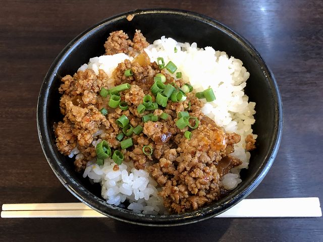 こちらは、一緒にいただいた品。相方が引いた店頭のガチャガチャが3等だったので、それを譲って貰って注文したという。それで味的には、以前いただいたことがある旨辛味噌ラーメンに使われている肉味噌だけあって間違いが無いですね。あと丼を持つと確かな重量感があり、実際、ご飯の盛りがかなり良かったというか。もっとも、最初はそのまま、途中からラーメンのスープを掛けていただけば、そのご飯がきれいにお腹に収まったんですがね。