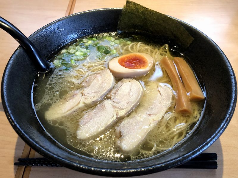 それで私が今回いただいたのが、限定20食というこちらの品。じつは前回お伺いした時にいただこうかかなり迷った品で、それを食べたかったのも今回自宅から結構な距離を走ってこちらまでお伺いする理由になっていたんですよね。で、まずはスープからいってみたところ、名前のとおり鶏ベースなのは間違いないけれど、それだけじゃない重層的味わいが。うち一つは干し椎茸でしょうか?(自信なし。間違っていたら申し訳ない。)そんな風味というか、乾物的植物系の旨味のようなものも感じます。それと表面に浮いた脂は鶏脂でしょうか?甘味があり、そのコクによって全体の味が膨らむ感じが。それと味付けは塩ですかね?しっかり目の濃さが味に芯を通しているように思います。また、そこに合わせる麺は、こちらの鶏白湯系のラーメンとは違う、細いストレートタイプのもの。その口当たりと食べ進むにつれ変化する食感から加水率はやや低めでしょうか?小麦っぽい麺自体の風味もちゃんと感じ、スープとも良く合っています。そして具は、鶏白湯系の品と違って鶏チャーシューが3枚。柔らかい食感で、こちらもスープ同様味付けは塩ベースでしょうか?鶏肉の風味が良くわかります。あと黄身中心部がトロっとした味玉は、醤油ベースの味付けで、逆にそれがアクセントに。更にメンマは、柔らかく甘塩っぱいしっかりとした味付けになっています。