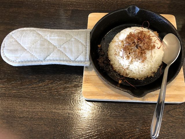 こちらは、一緒にいただいた品。登場してすぐ、スプーンで切りつつ底に押し付けるように混ぜると、花椒の良い香りが立ち上ってきます。そして頃合いを見ていただけば、上に乗った肉味噌?と、おこげの香ばしさが相まって、更にそこに、ピリ辛程度の刺激が加わって、これが、もう。その辛さですが、花椒の痺れる辛さよりは唐辛子の辛味の方が強く感じますね。あと、後味は、結構コッテリとしていました。